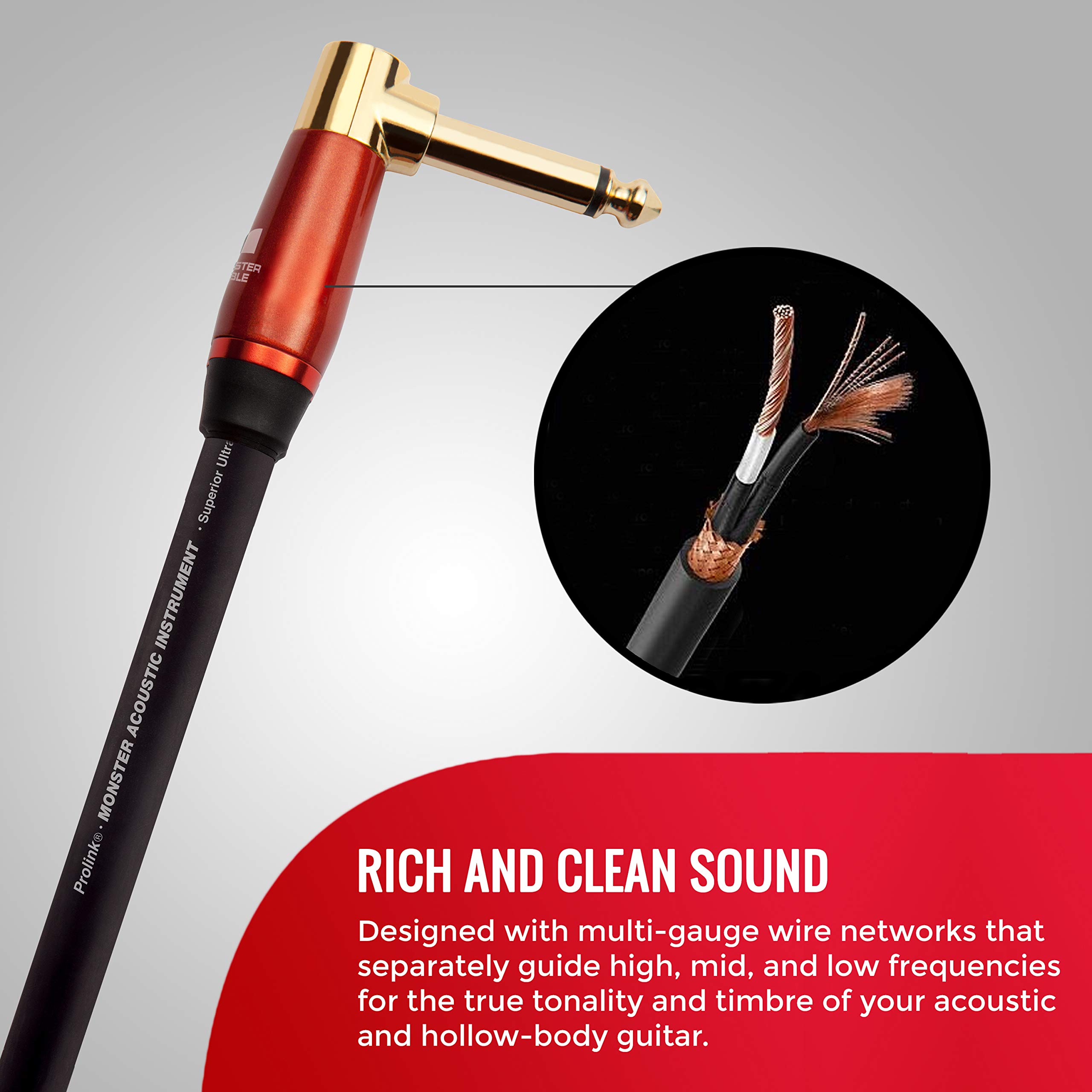 RICH AND CLEAN SOUND: The Monster Prolink Acoustic Instrument cables are designed with multi-gauge wire networks that separately guide high, mid, and low frequencies for the true tonality and timbre of your acoustic and hollow-body guitar